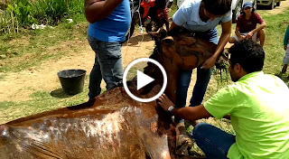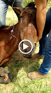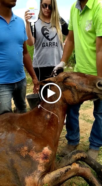 Essa égua é uma verdadeira heroína, ela conseguiu se soltar do lugar onde estava amarrada e caminhou até cair num barranco, quando foi vista por moradores de uma comunidade em Santa Cruz...